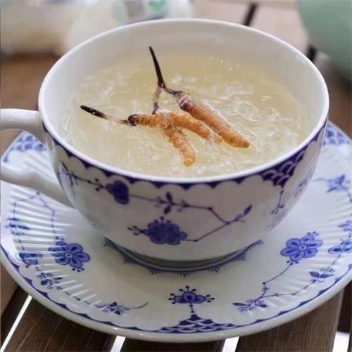 3. 冬蟲夏草泡水:將適量的冬蟲夏草用溫水浸泡一段時間后,喝下泡水??梢詥为毞?,也可以與其他藥材一起泡水,如枸杞、黃芪等。這種吃法方便簡單,適合日常飲用。